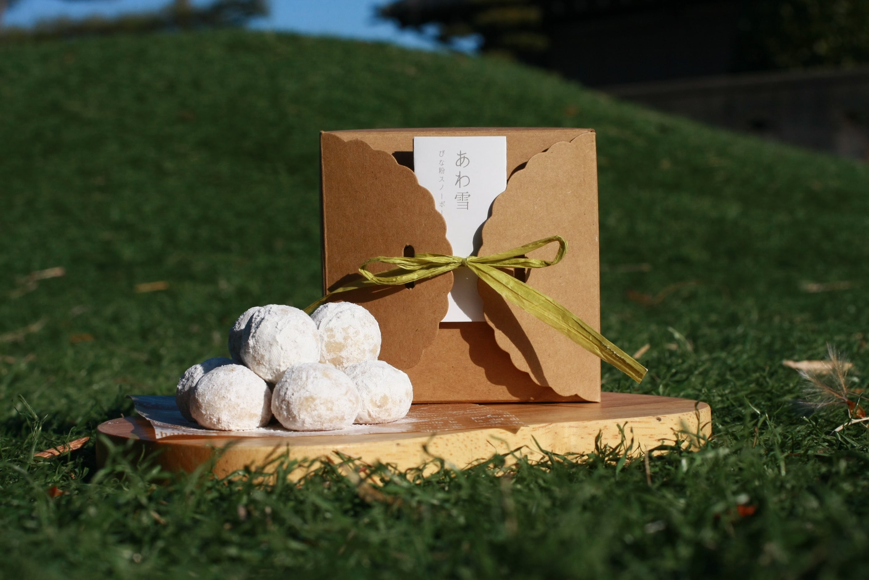 開発・製造を担ってくださったcafe meさんが試作を重ねる中で行き着いたのが、 「崩れる」のではなく「溶ける」食感のスノーボールクッキーでした。淡く儚い口どけとともに、ぴな粉の落花生の香ばしさがふわりと広がる印象的な食感から、 シンガーソングライターのゆうなみさんが「あわ雪」と名付けてくださいました。