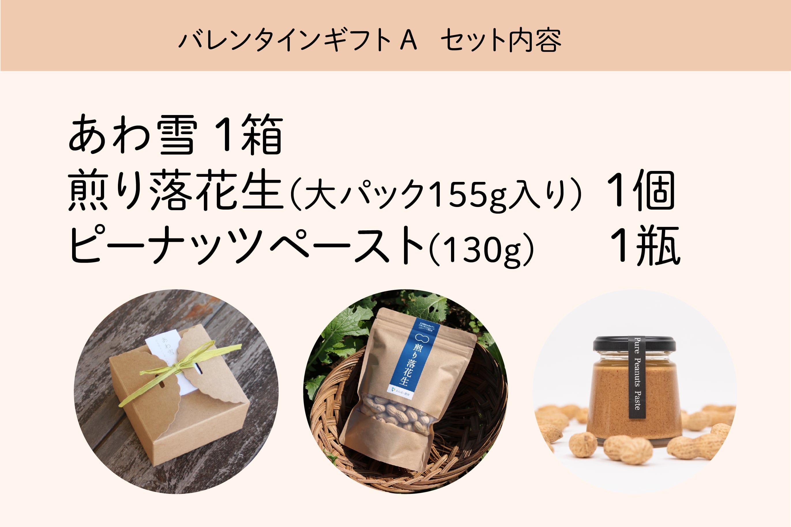 バレンタインシーズンに合わせて、落花生の香ばしさが嬉しい、ぴな粉のスノーボールクッキー「あわ雪」の音楽付きギフトセットをご用意しました。