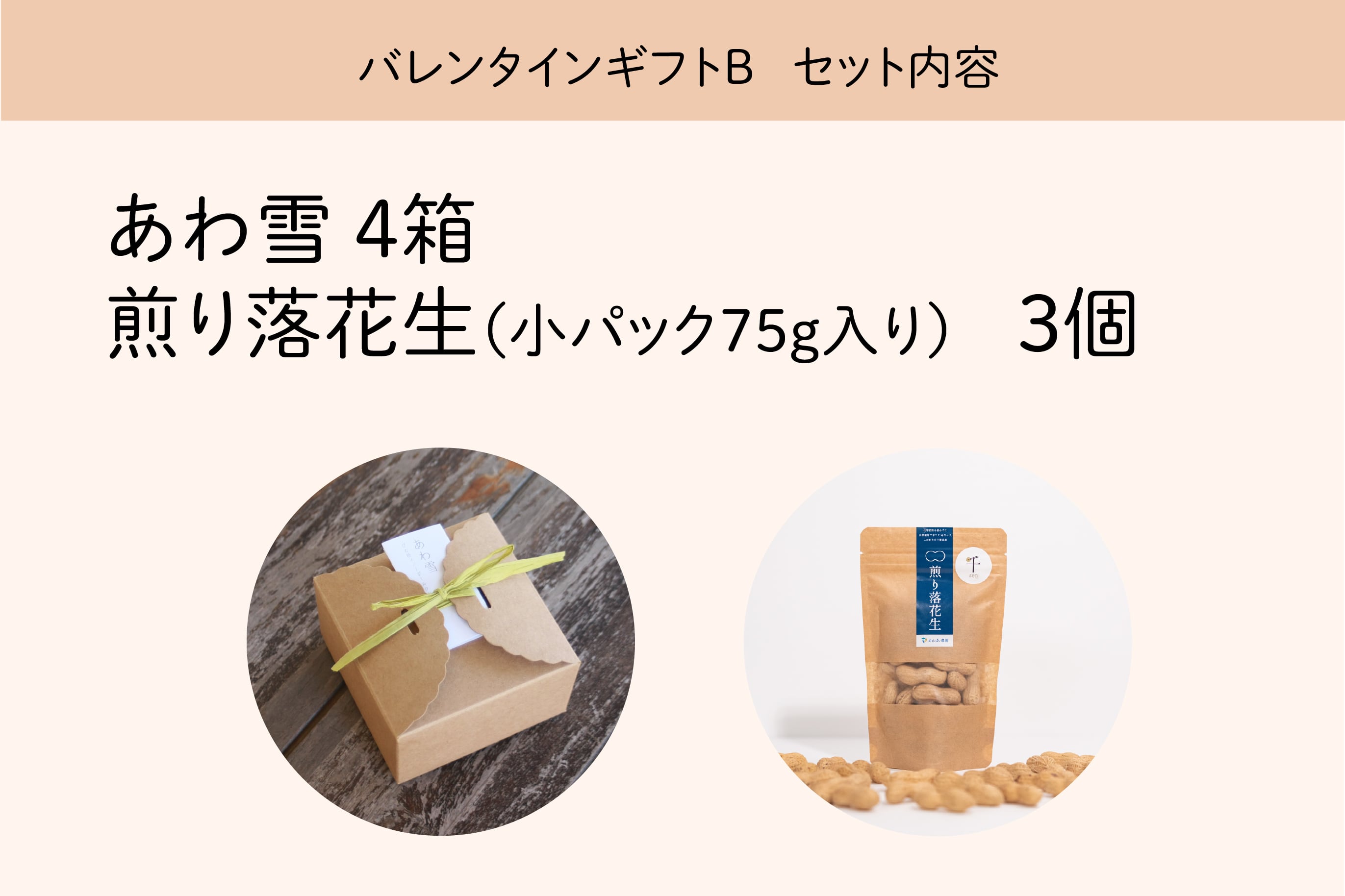 バレンタインシーズンに合わせて、落花生の香ばしさが嬉しい、ぴな粉のスノーボールクッキー「あわ雪」の音楽付きギフトセットをご用意しました。